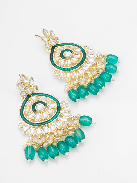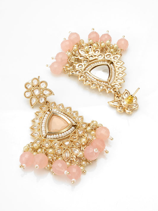 Traditional gold plated alloy chandelier earring with pearl kundan detailing
